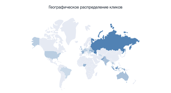 • Статистика географического распределения кликов показывает страны с наибольшим количеством переходов в течение всей партнерской деятельности.