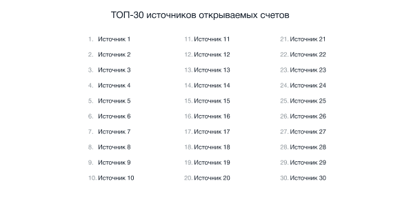 • Это список интернет-ресурсов, расположенных по количеству открытых счетов при переходе с указанного веб-сайта по вашей партнерской ссылке.