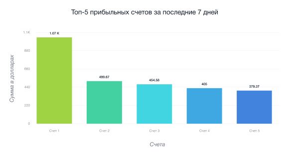 • Среди множества своих клиентов вы всегда сможете определить лидирующую пятерку тех, кто приносит вам наибольшую прибыль.