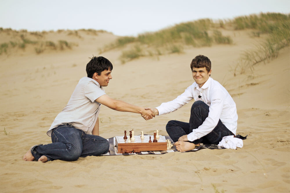 На берегу Балтийского моря состоялась показательная шахматная партия между многократным победителем международных турниров - молодым гроссмейстером Мангусом Карлсеном и Павлом Шкапенко, международным мастером по шахматам и старшим менеджером отдела развития компании ИнстаФорекс.