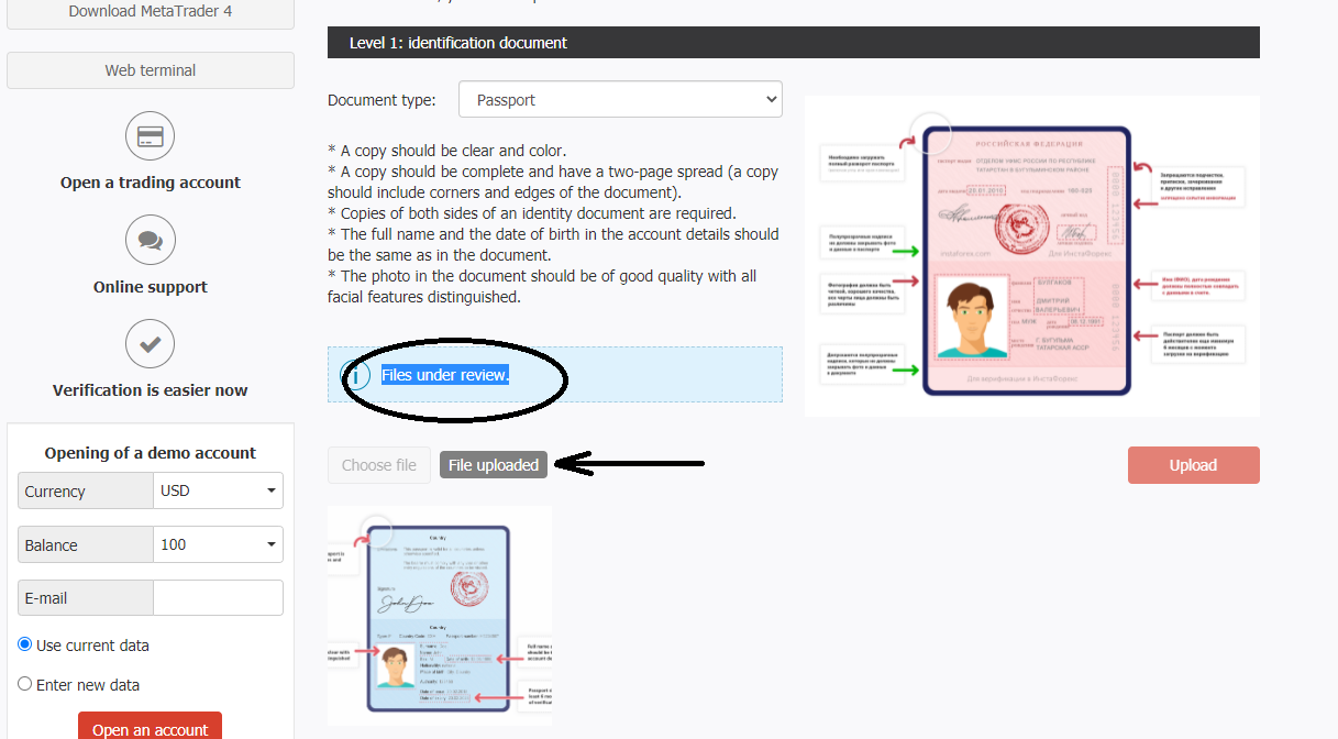 After you upload documents for verification in your Client Area, you will see the status telling you that the documents are uploaded and accepted for consideration. Besides, we will email you a confirmation that your documents are received. As soon as a verification manager processes your request, the status in your Client Area will be updated and you will get an email with the decision.